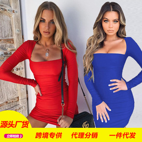 XQY9299 亚马逊欧美秋冬新款时尚不规则包臀长...