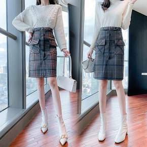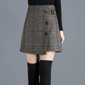 千鸟格短裙女2022秋冬新款韩版毛呢a字不规则显瘦...