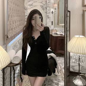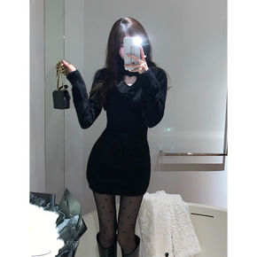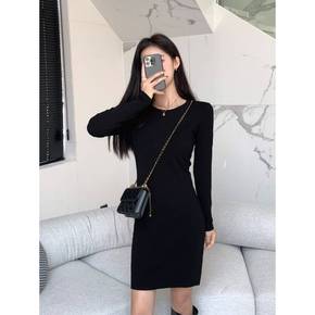 黑色针织连衣裙女秋冬季包臀裙子御姐轻熟风长袖高级感...