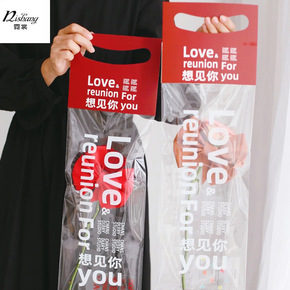 情人节ins透明手提袋玫瑰花单支袋鲜花包装纸opp...