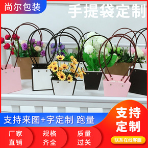 现货牛皮纸鲜花袋梯形防水花篮纸袋皮管手提礼品袋插花...