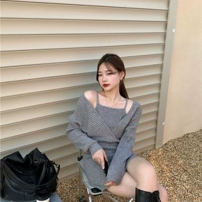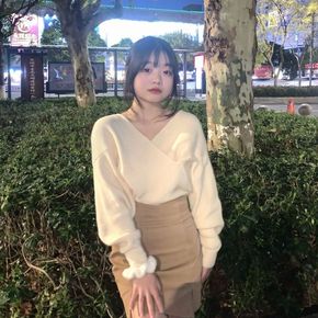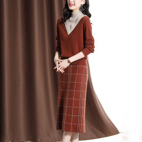 两件套/单件洋气百搭交叉v领软糯毛衣+小个子半身裙...