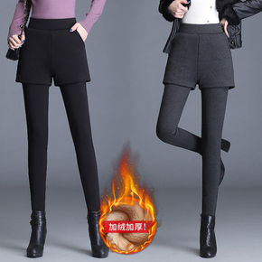 加绒加厚打底裤女外穿冬假两件短裤高腰弹力保暖大码胖...