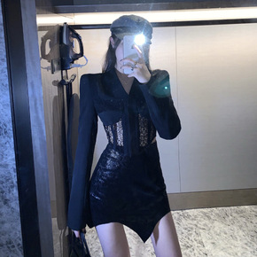 御姐气质套装蕾丝拼接小西装性感包臀裙修身两件套女装...