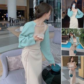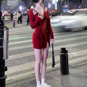 2022秋冬女装新品长袖拉链开衫外套吊带背心连衣裙...