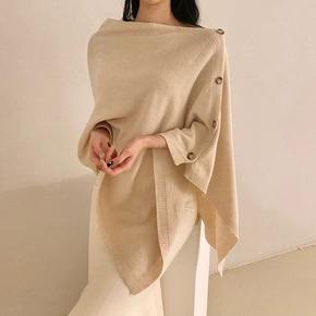 良良家优雅气质一字领不规则披肩式毛衣+高腰包臀鱼尾...