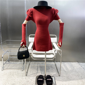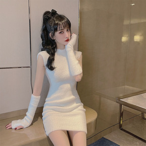 单/套装2021秋冬新款名媛气质不规则毛衣+包臀短...