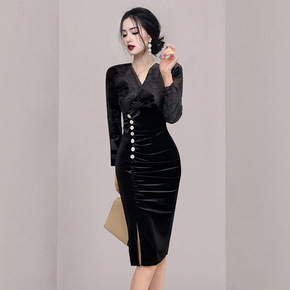 2020夏季新款黑色连衣裙假两件包臀裙设计感名媛修...