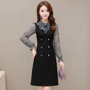 时尚连衣裙印花裙中长款拼结假两件中长款打底包臀裙A...