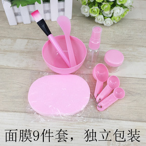 美容工具套装面膜碗棒刷计量勺洗脸扑泡瓶喷雾瓶9件套...