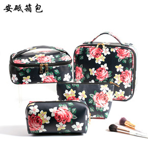新款现货玫瑰花化妆包大容量洗漱包纹绣美甲工具箱便携...