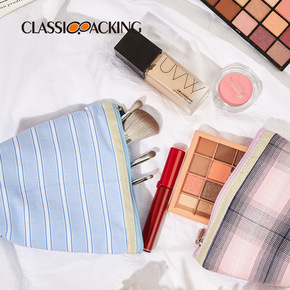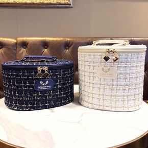 小香风定型化妆包便携高级感金线格纹时尚大容量旅行手...