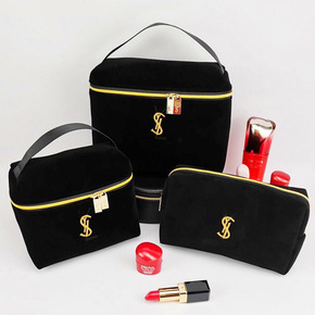 化妆包随身便携手提式出差收纳袋整理包黑色丝绒手拿包...