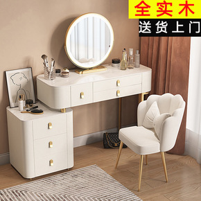 高端实木岩板梳妆台轻奢感卧室现代简约网红化妆桌收纳...