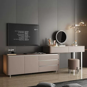 轻奢岩板化妆桌现代简约卧室电视机柜转角书桌梳妆台收...