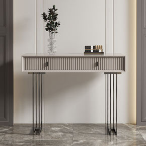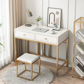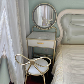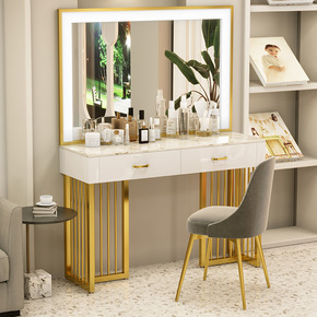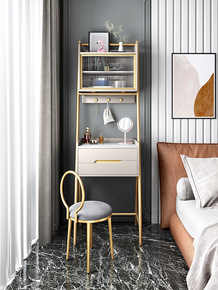 ..现代简约轻奢烤漆梳妆台收纳一体卧室设计金色框架...
