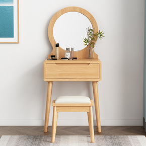 实木梳妆台极简小型卧室设计师收纳柜一体现代简约轻奢...