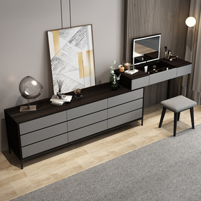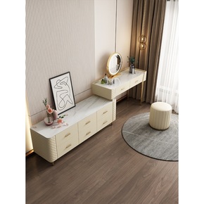 高轻奢现代风电视梳妆台一体书桌电脑收纳柜卧室岩板设...