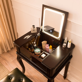 .美式纯实木梳妆台63/81/100折叠带灯网红妆...