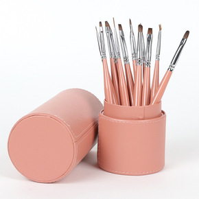 平头光疗美甲笔全套笔筒肉粉色12支套装彩绘凝胶美甲...