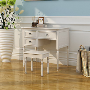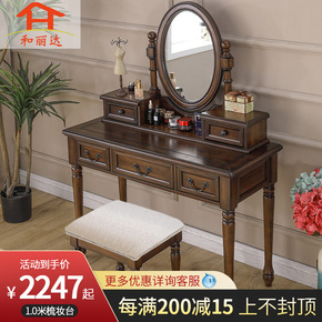 美式乡村复古实木梳妆台小户型化妆桌带收纳盒镜子家具...