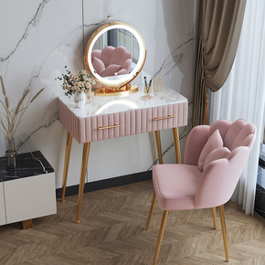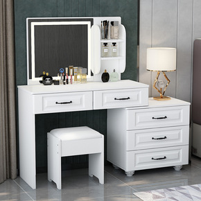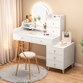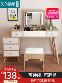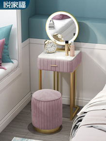 北欧梳妆台卧室轻奢带灯桌子小户型桌子一体简约化妆台...