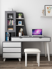 北欧电脑梳妆台书桌书架收纳柜一体卧室多功能镜子伸缩...