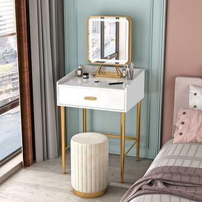 北欧带灯梳妆台50简约卧室小户型收纳柜一体迷你小型...
