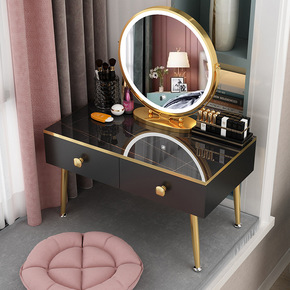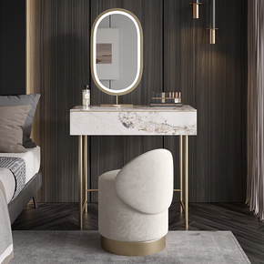 意式轻奢梳妆台大理石后现代卧室创意奢华化妆桌带灯网...