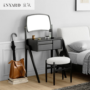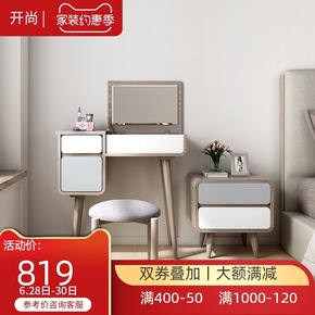 北欧简约现代梳妆台小户型卧室ins多功能翻盖带镜子...