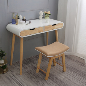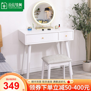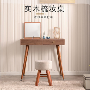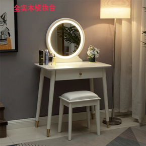北欧实木梳妆台卧室简约现代化妆桌网红ins风led...