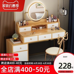 梳妆台收纳柜一体卧室现代简约小户型网红翻盖带灯多功...