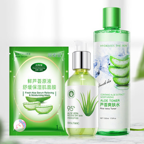 泊泉雅芦荟胶套装补水洁面乳爽肤水精华乳微商批发无盒...