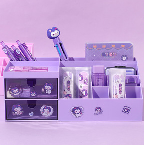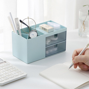 创意桌面收纳盒多功能文具整理盒分格带抽屉笔筒简约办...
