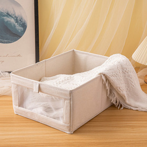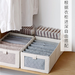 日式棉麻可视窗收纳箱衣柜收纳盒布艺裤子分格衣物整理...