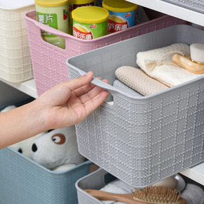 美安居日式麻布纹收纳筐塑料筐玩具杂物整理置物篮学校...