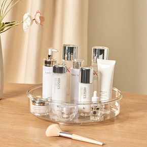 轻奢可旋转化妆品收纳盒透明塑料女生桌面化妆刷口红收...