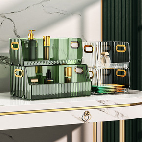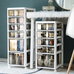 化妆品收纳盒抽屉式落地柜卧室梳妆台置物架放桌下可移...