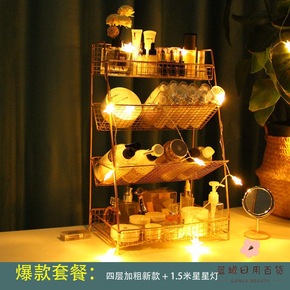 铁艺收纳化妆品收纳盒桌面置物架护肤品子网ins多层...