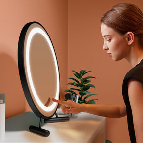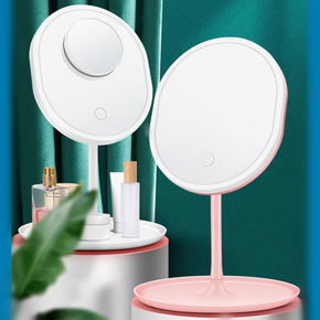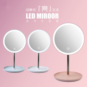 网红化妆镜 带灯智能梳妆镜LED台式桌面镜学生补光...