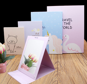 镜子折叠宿舍学生翻盖式超大号小清新随身迷你便携小号...