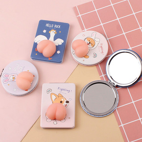 可爱PU皮镜子创意女生随身化妆镜迷你便携折叠镜子礼...