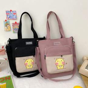 大容量女士帆布托特包卡通糖果色学生补课包韩版简约单...
