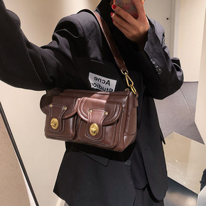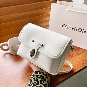 纯色锁扣包包女秋冬款逛街女士单肩包韩版百搭锁扣斜挎...