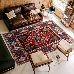 现货波西米亚客厅地毯复古沙发地垫卧室满铺床边毯欧式...
