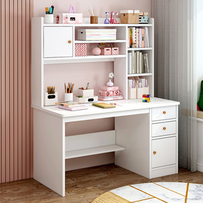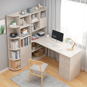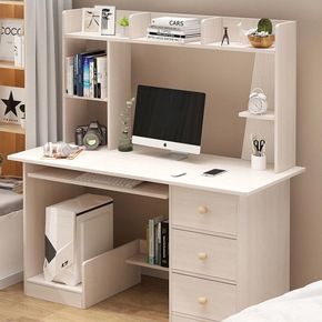 电脑书桌台式简易书架组合家用简约书柜一体学生卧室抽...
