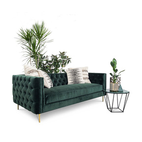 北欧布艺双人三人沙发美式简约现代小户型客厅墨绿丝绒...