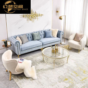 美式轻奢布艺沙发现代简约小户型客厅直排双人三人绒布...