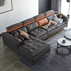 纳米科技布沙发简约现代大平层别墅羽绒超软轻奢黑色科...