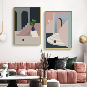 酒店工程配画几何幻想挂画个性创意有框画北欧抽象三联...